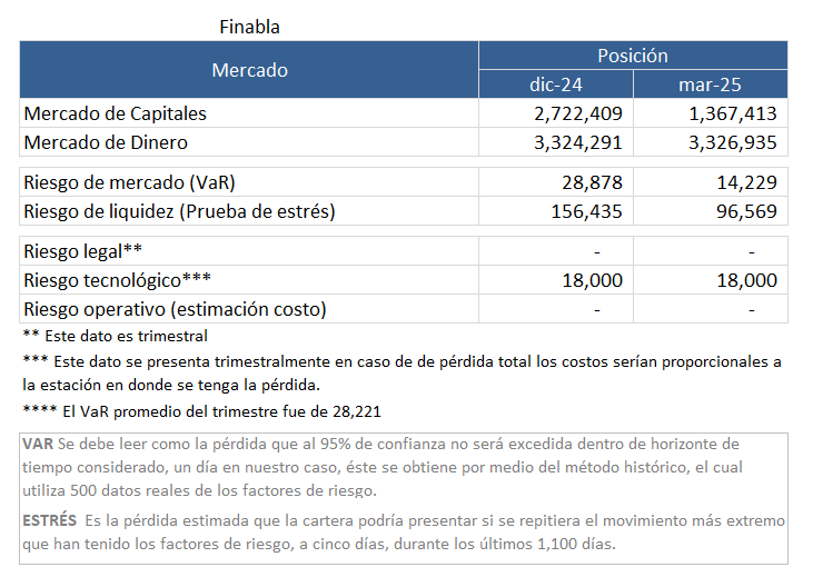 La cuantificación de riesgos se realiza utilizando herramientas tecnológicas como VaR Global, SIF sistemas internos, en conjunto con una base de datos que tiene las siguientes fuentes de información: Bloomberg, Proveedor de precios y páginas de Instituciones Regulatorias.