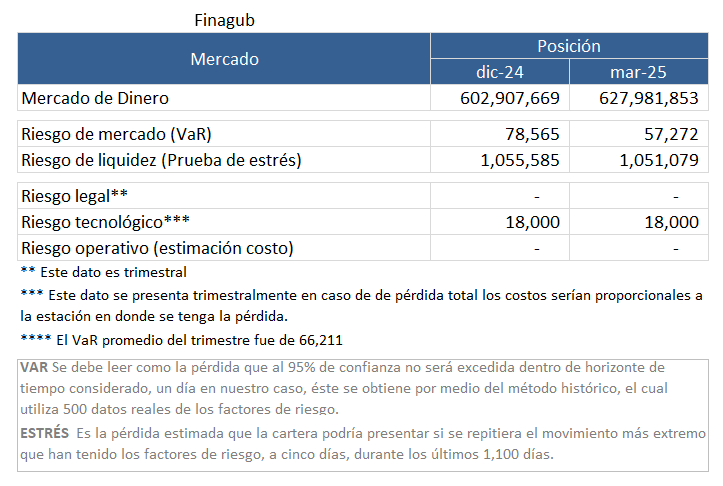 - Revisa posiciones y cuantificaciones de riesgo en forma trimestral.