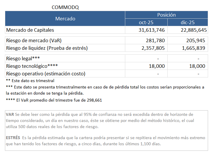 - Revisa posiciones y cuantificaciones de riesgo en forma trimestral.