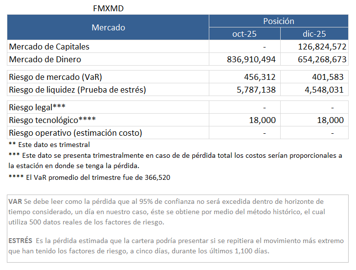 - Revisa posiciones y cuantificaciones de riesgo en forma trimestral.