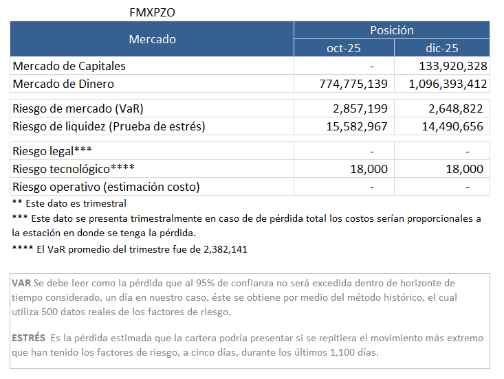 - Revisa posiciones y cuantificaciones de riesgo en forma trimestral.