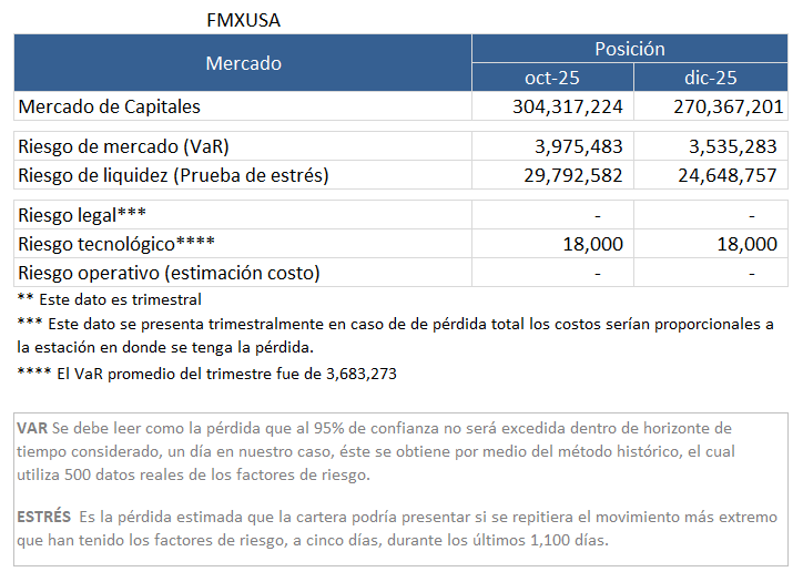 - Revisa posiciones y cuantificaciones de riesgo en forma trimestral.