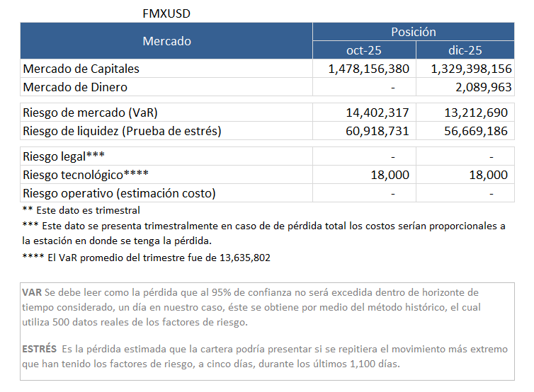 - Revisa posiciones y cuantificaciones de riesgo en forma trimestral.